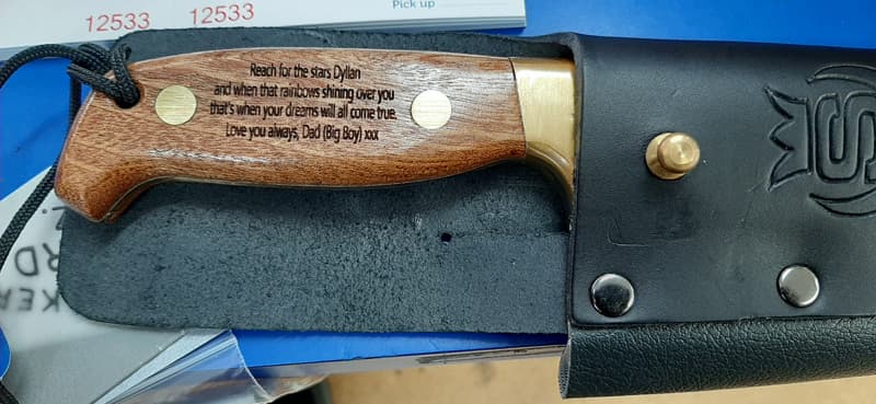 Quality Keys has a laser engraver that allows us to inscribe on metal, glass, leather, and wooden items. For added style, we can apply your colour logo or a photo to trophies, plaques, mugs, and glassware using our dye-sublimation technology. A popular item on offer is a 21st key made of rimu. You can have it engraved, put a baby photo inside, and then have family and friends sign it, creating a treasured keepsake.